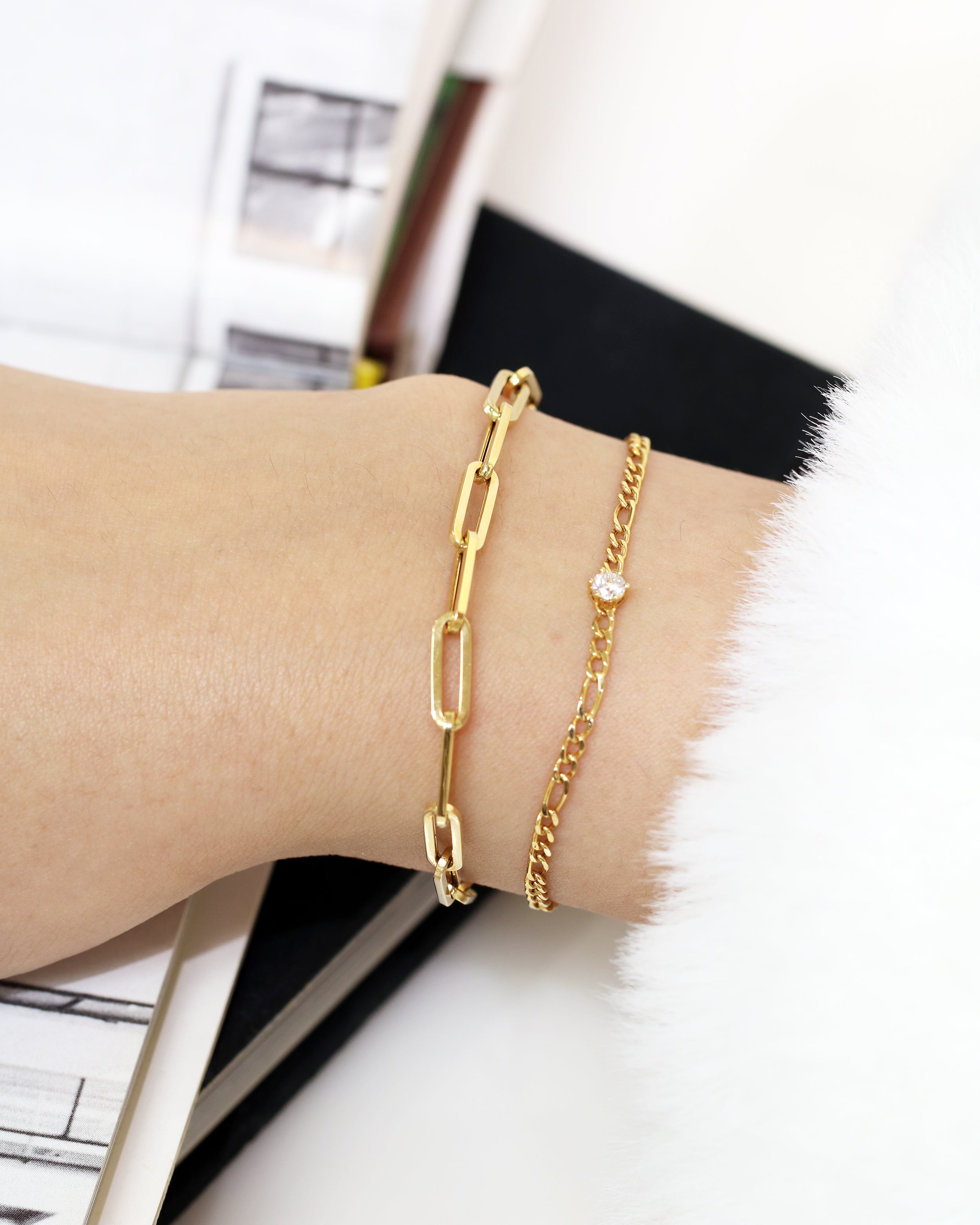 Double Paperclip Link Chain Bracelet (White/Rose/Yellow Gold)