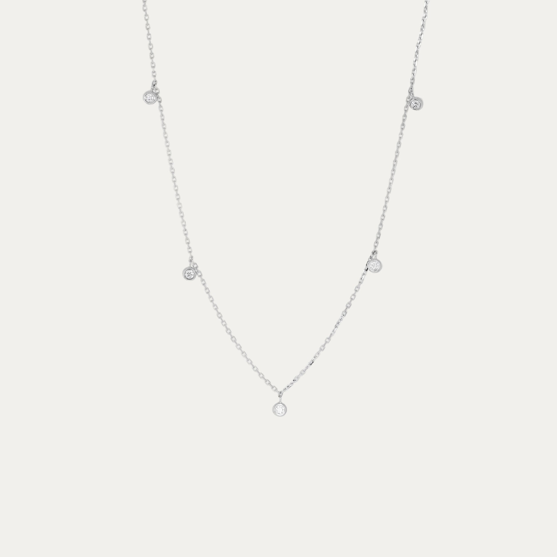 18k Gold 5-stone Bezel Set Diamond Necklace (White/Rose/Yellow Gold)