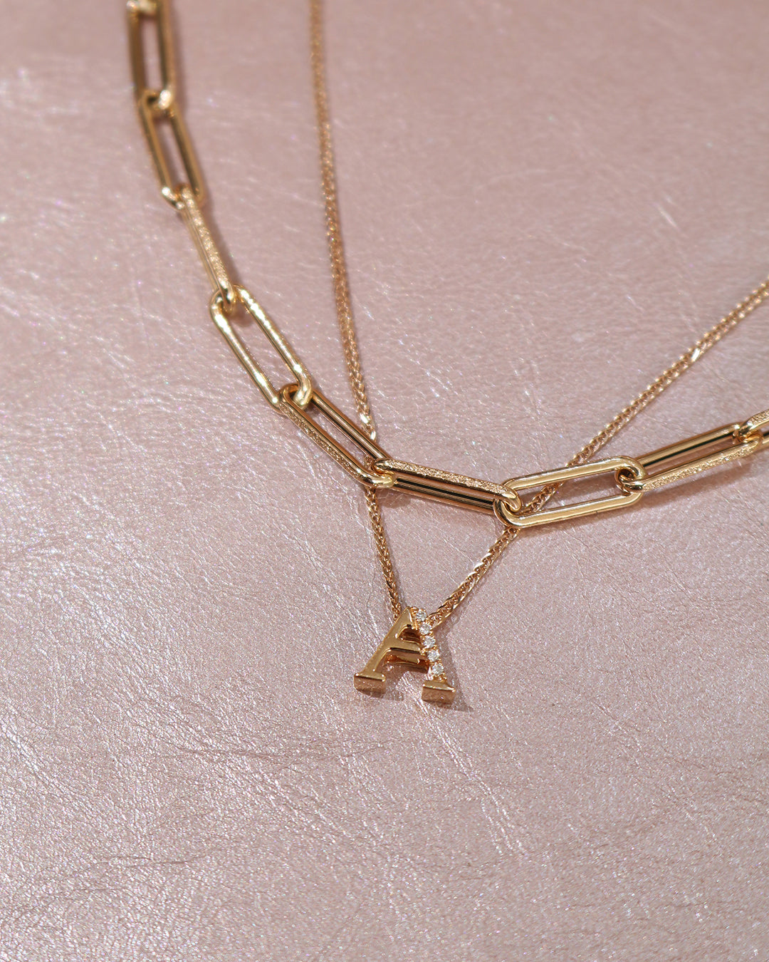 Make a unique statement with our 18k Rose Gold Alphabet A-Z Diamond Charm Pendant. Each letter is accented with natural diamonds for a touch of sparkle and sophistication, perfect for adding a personalized touch to any look.