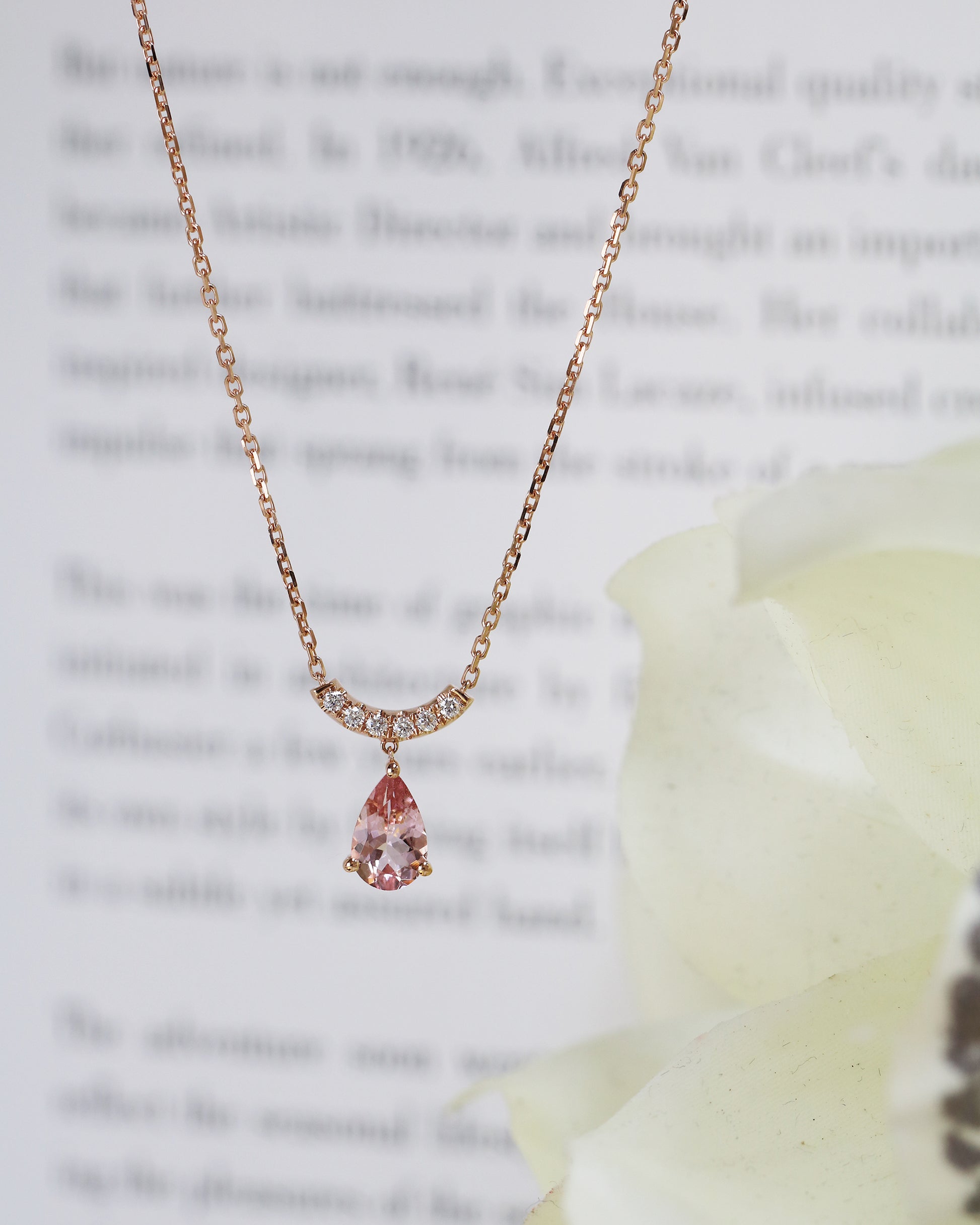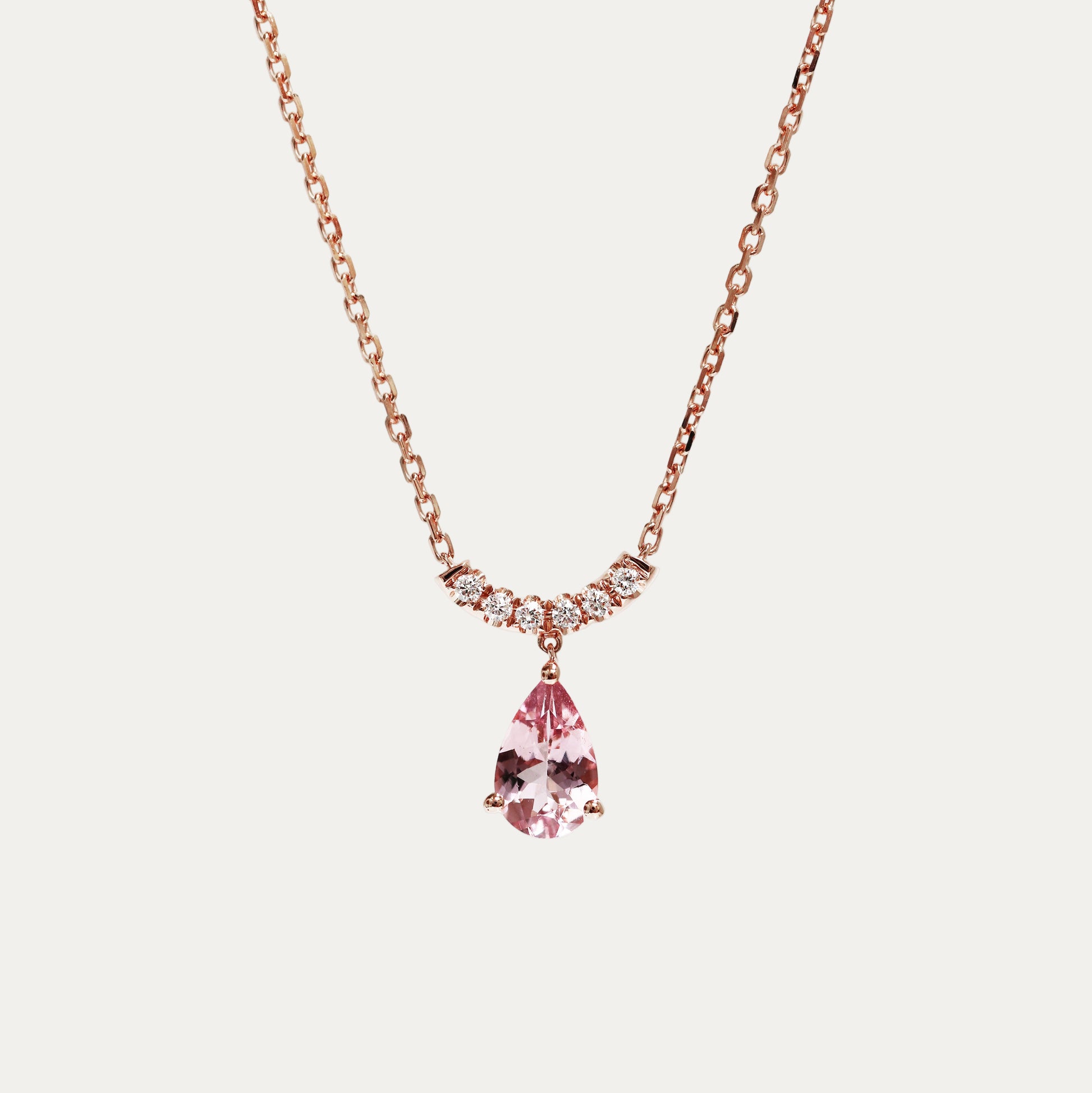 18k玫瑰金梨形粉紅摩根石鑽石頸鍊