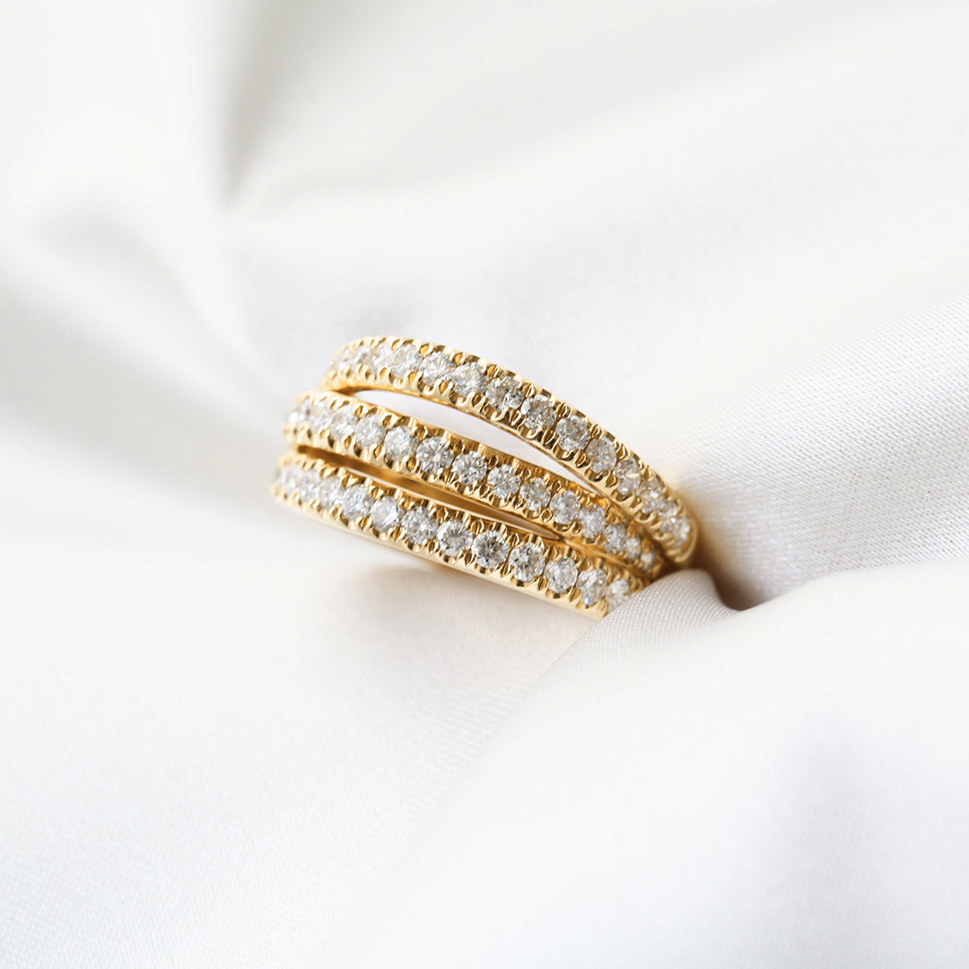 18k Yellow Gold 3-row Wavy Eternity Diamond Ring