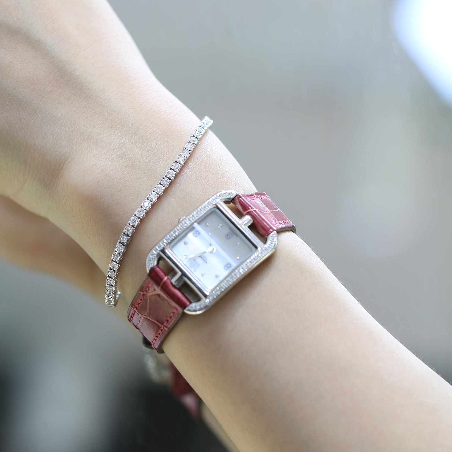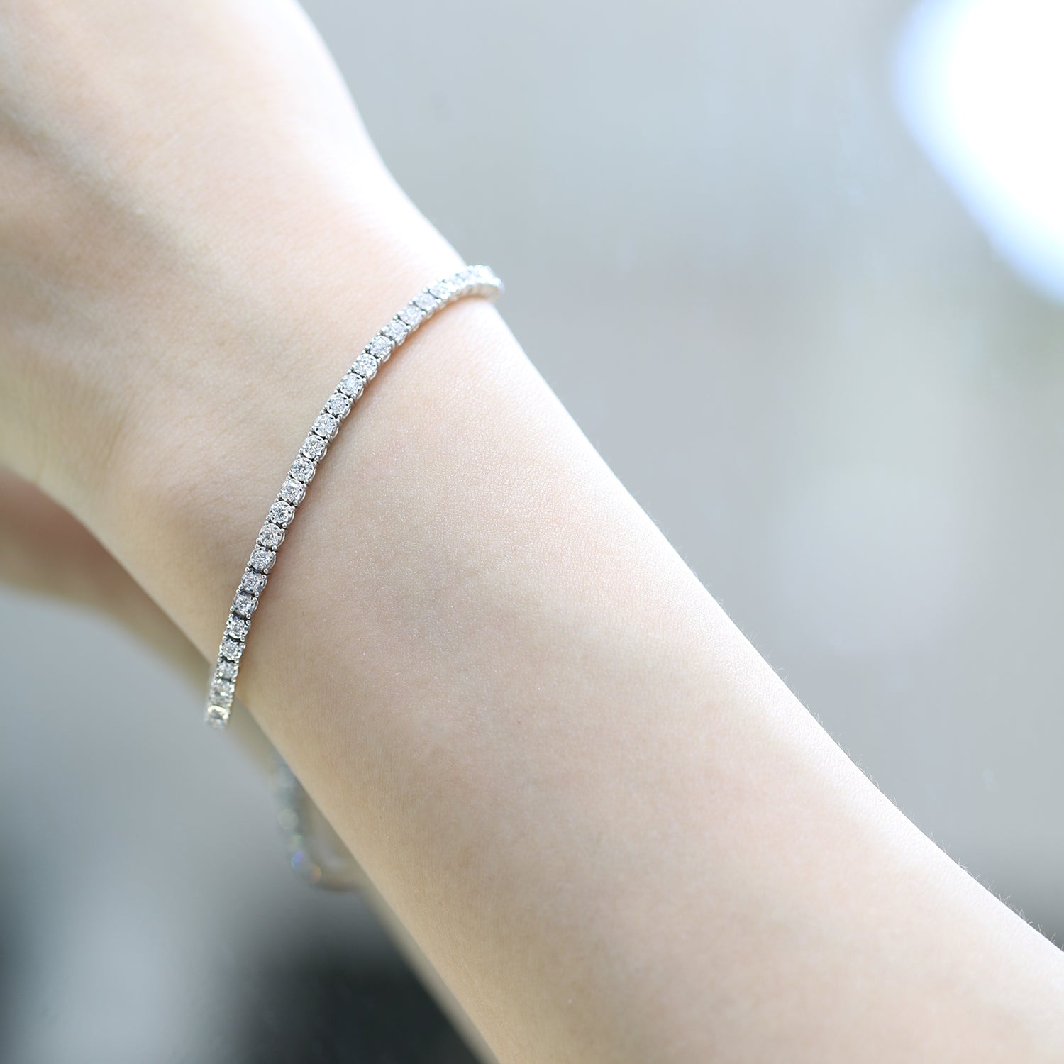 EF色天然鑽石網球手鏈非常精緻,貼合手腕,柔若無物,一致的火彩在手腕上閃耀。與手鈪或手錶一起配襯,更可畫龍點睛,展現出個人風格,是每位女士珠寶珍藏中不可或缺的單品之一。