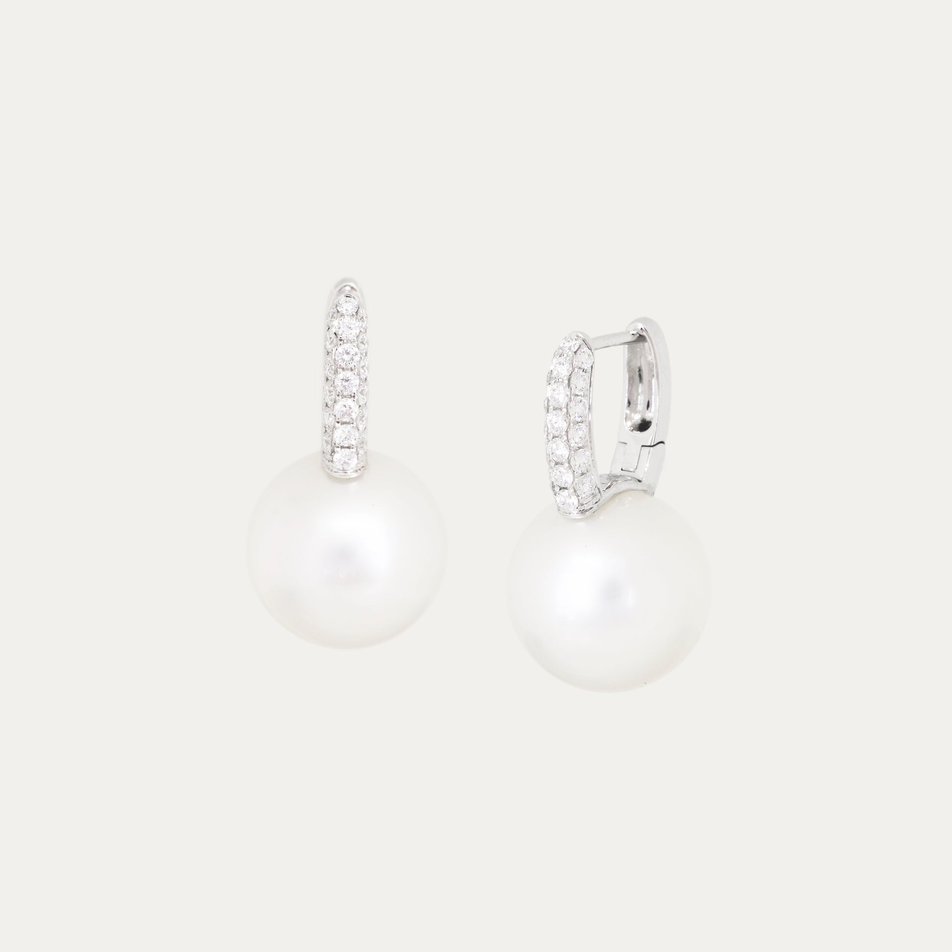 18k White Gold 14mm Australian South Sea Pearl Diamond Earrings