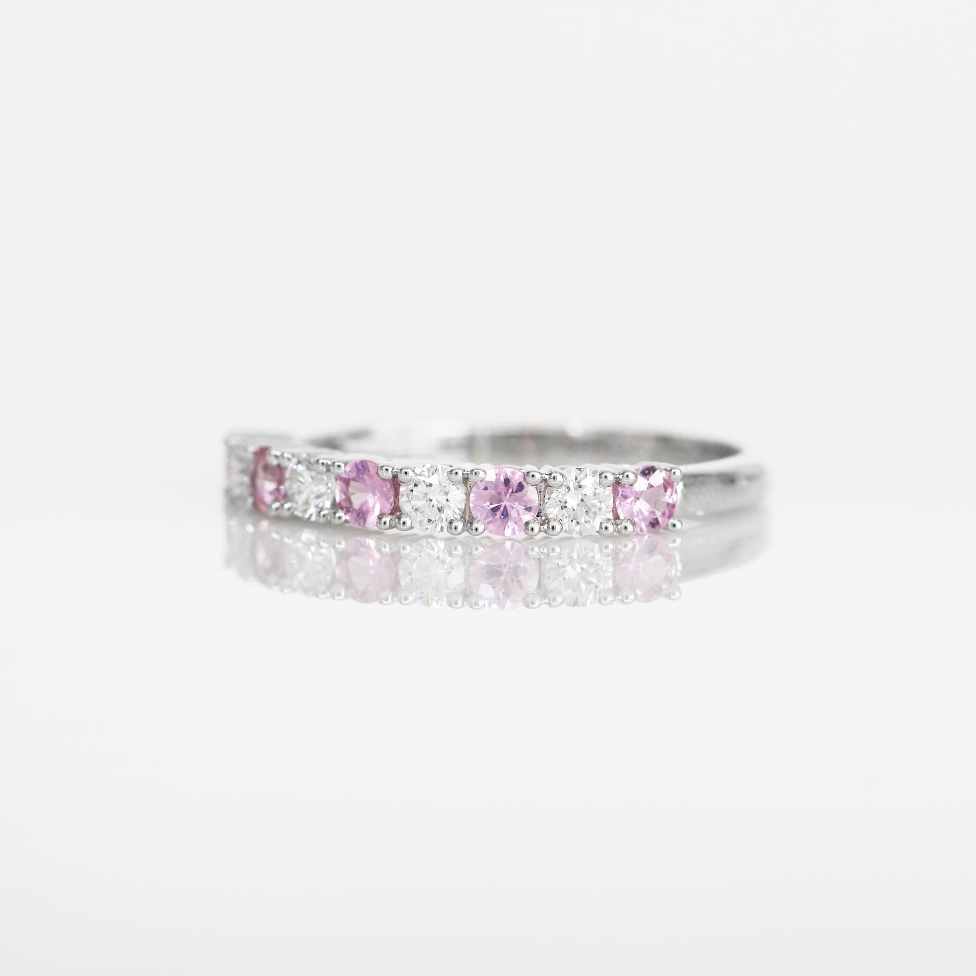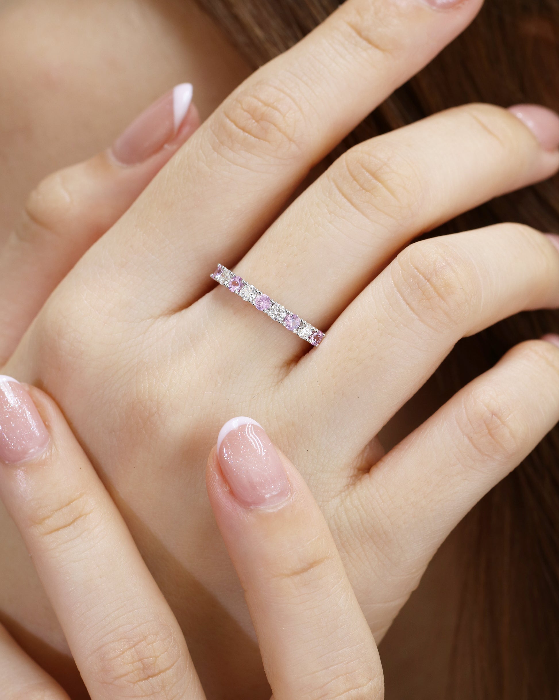 18k White Gold Round Shape Pink Sapphire Diamond Half Eternity Ring