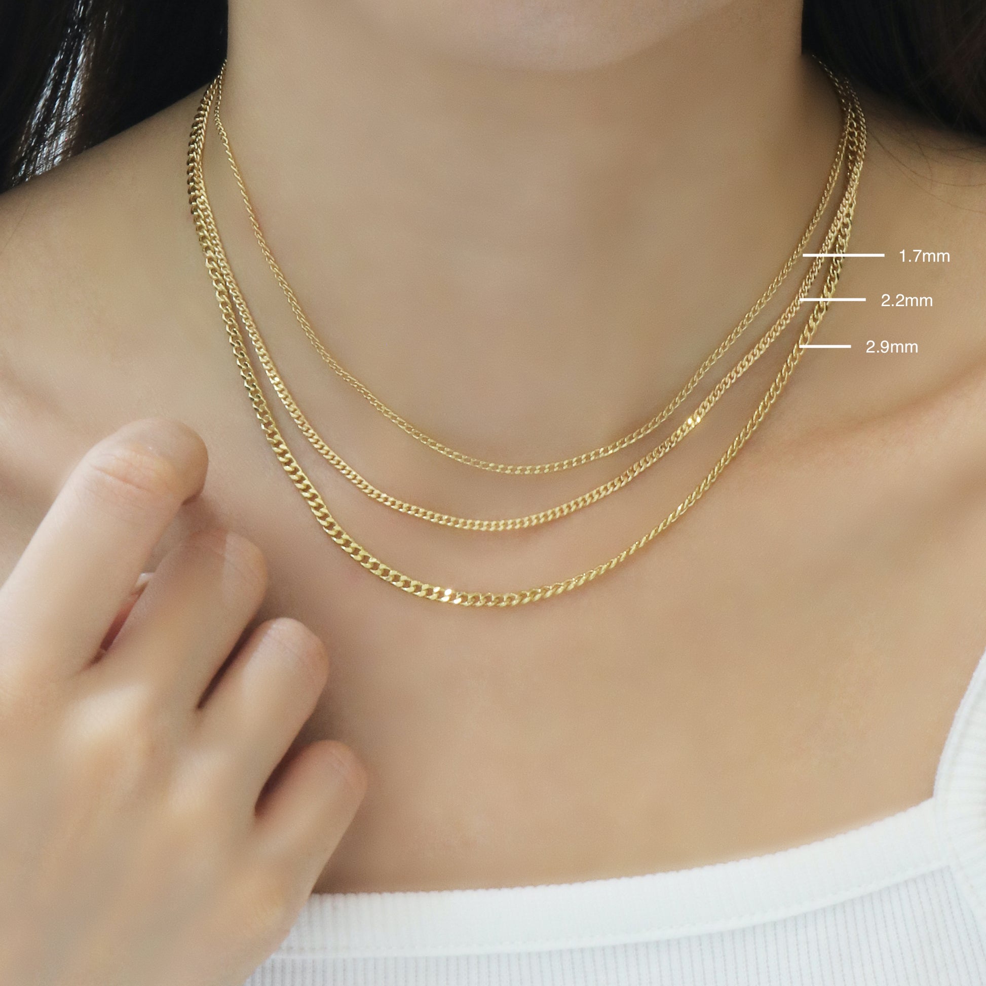 古巴頸鏈閃亮時尚,是歐美最長青的款式,每個圈距離緊密,闊身設計,尤其適合搭配PATREA鑽石墜飾,打造出時尚的造型。本店另有1.7mm/2.2mm可選購。
