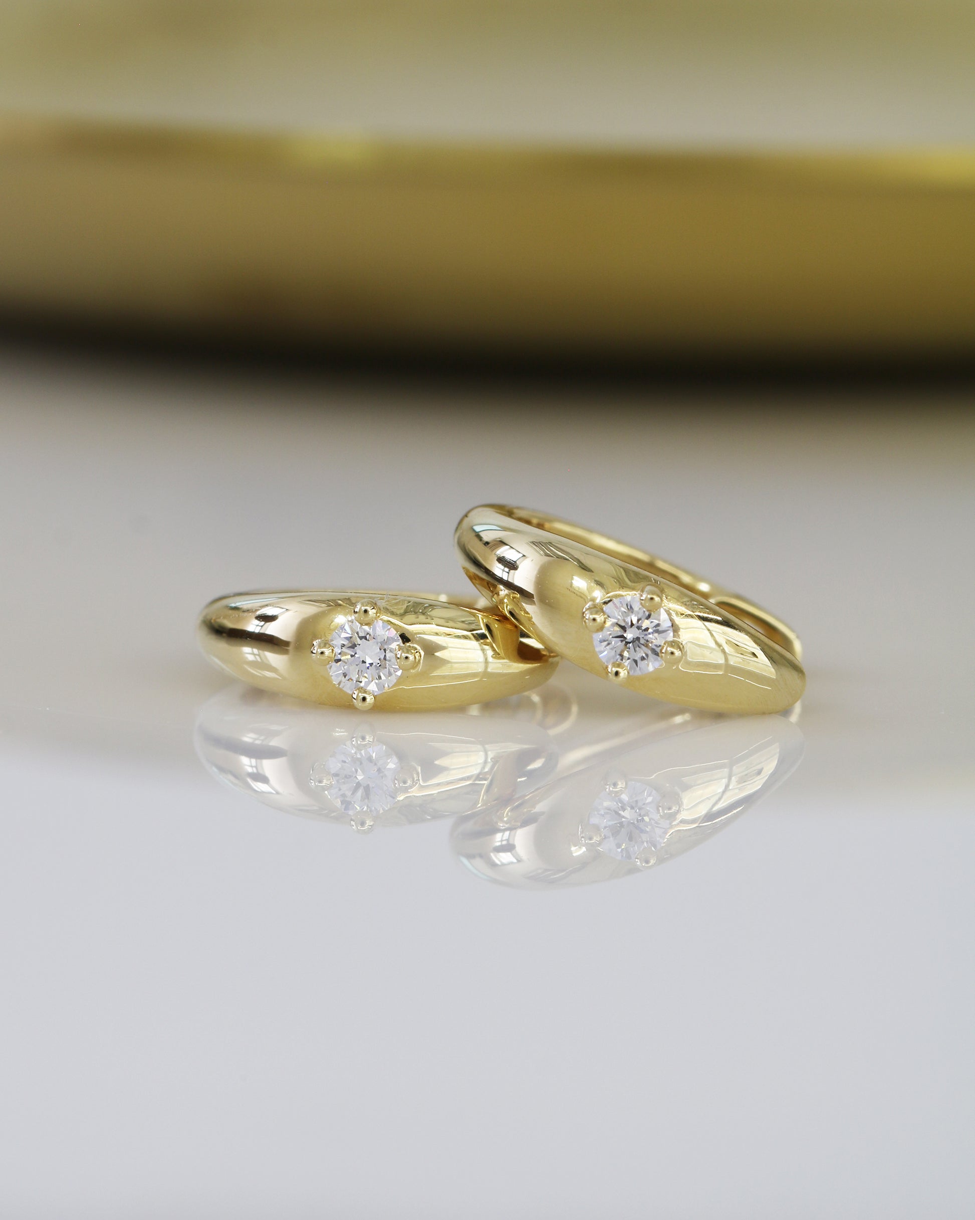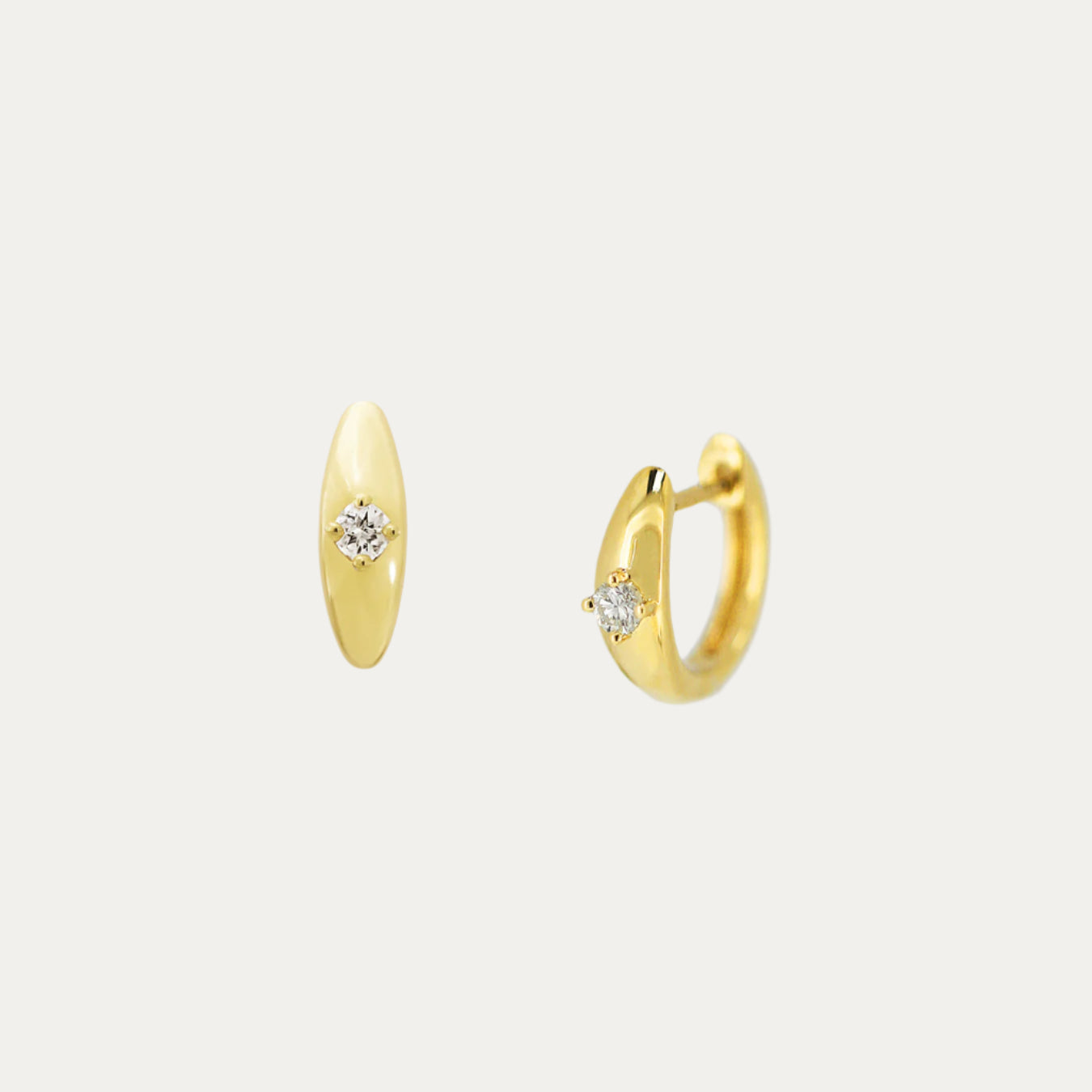 18k Yellow Gold Dome Diamond Huggie Earrings
