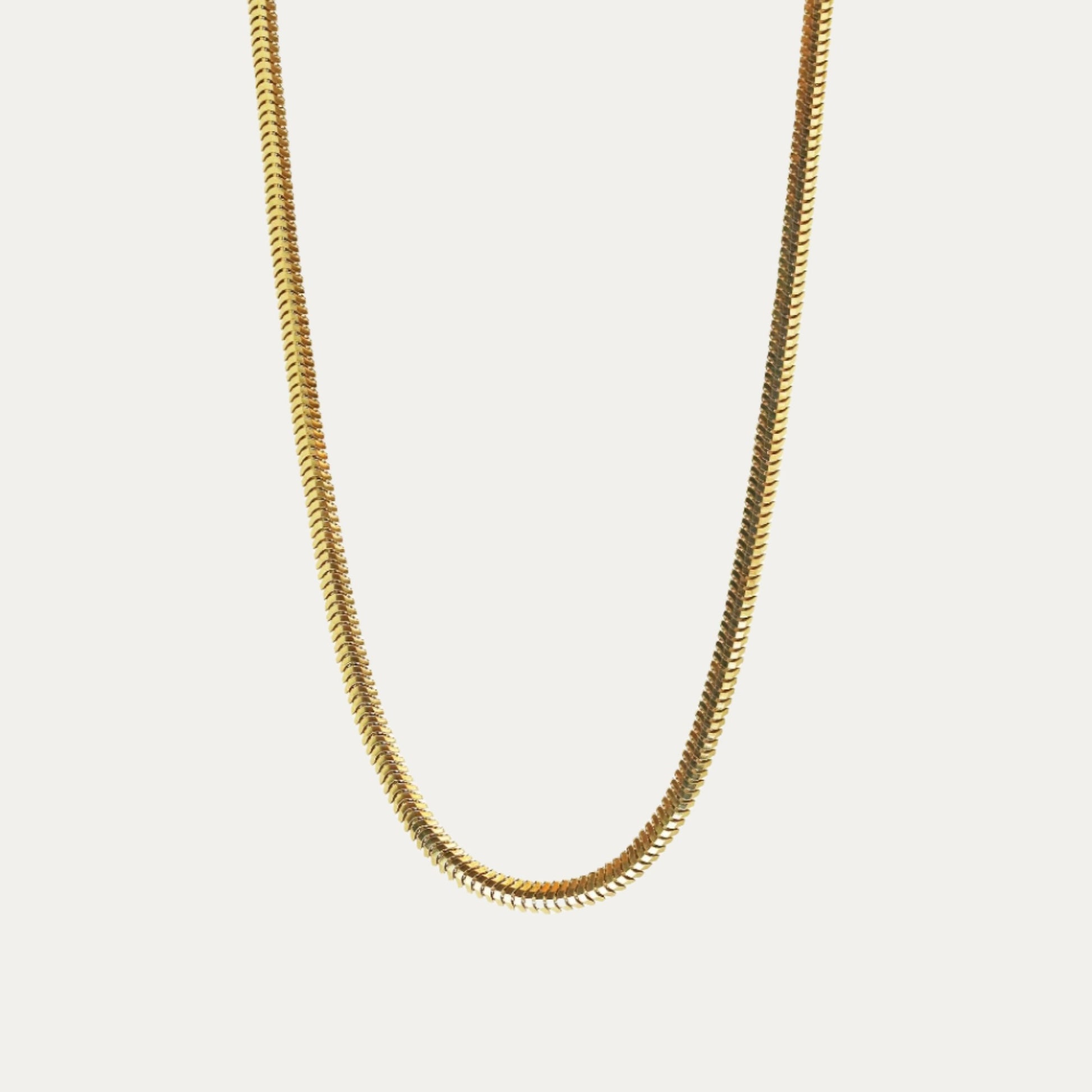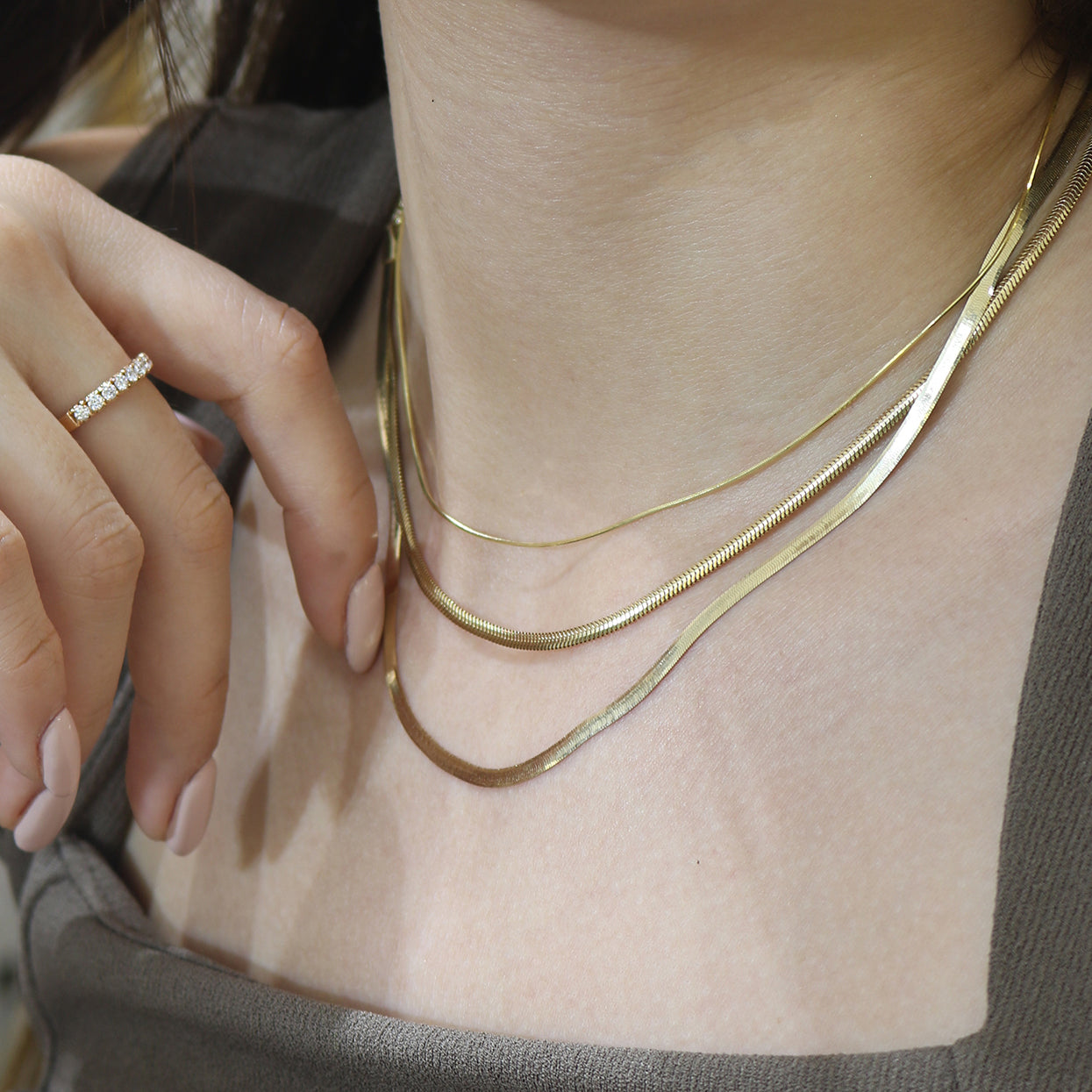 PATREA的蛇骨頸鏈家族中,最闊身最重金具份量感的款式。2.5mm闊,閃亮時尚,是喜歡歐美款式的女生的選擇。