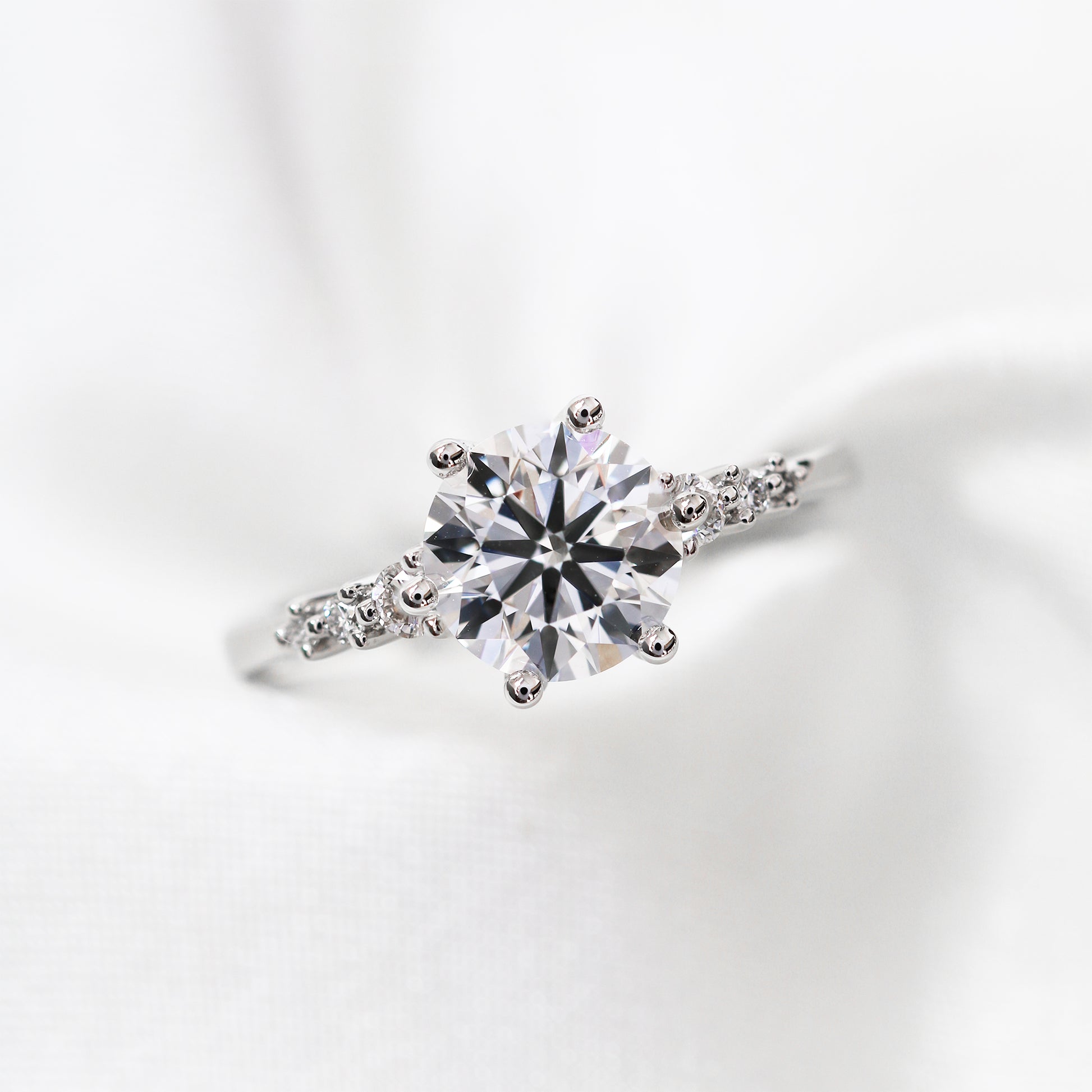 Create unforgettable moments with our exquisite 6-prong diamond ring, a classic and minimalist ring designed to celebrate your unique love story. The side view of the ring showcases initials of the couple, symbolizing them being tied together in love and commitment.