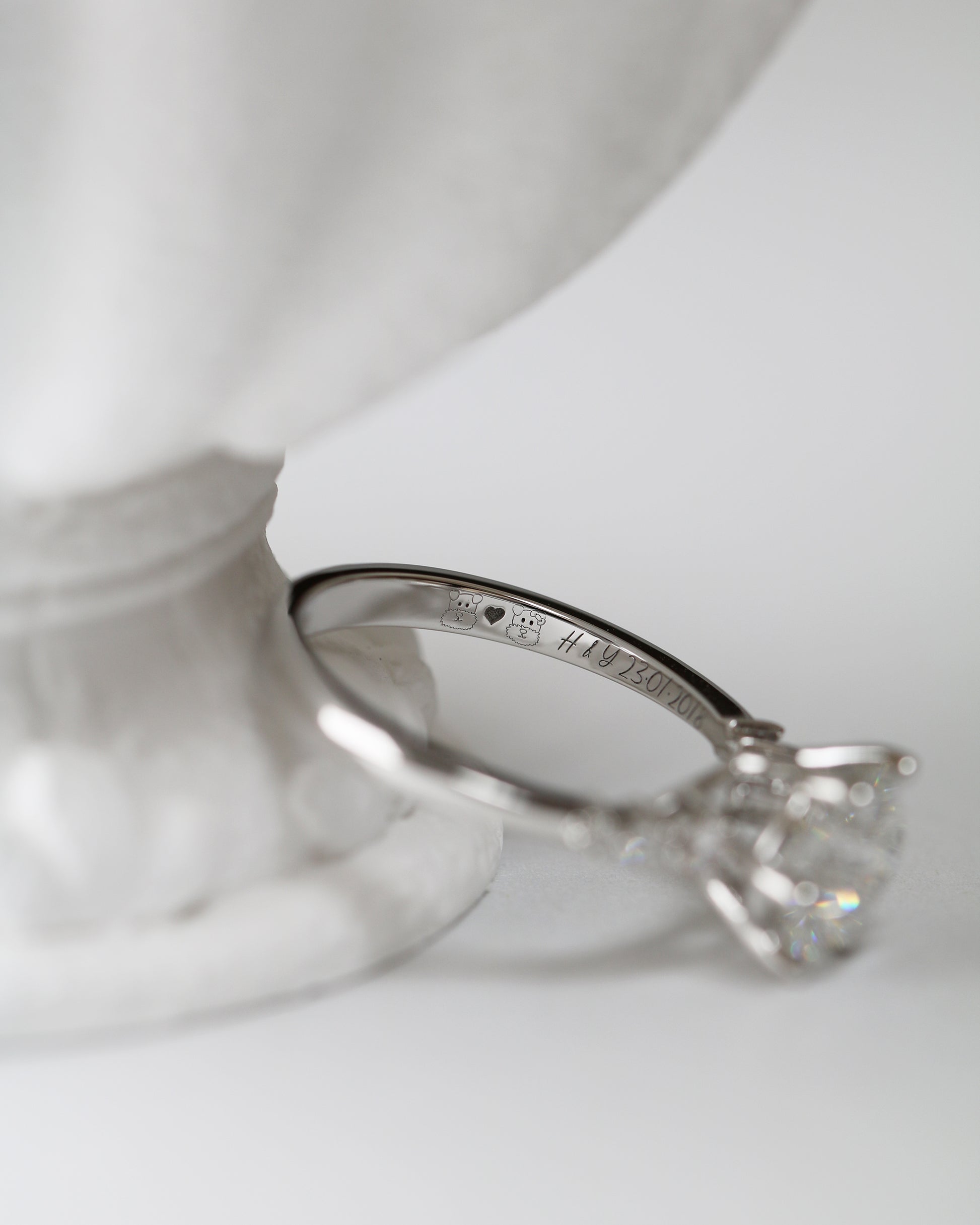 Our ring engraving service allows you to personalize your engagement ring by laser engraving. It can be names, sentences, quotes, dates, symbols, and even patterns. For more ideas and suggestions, feel free to contact us.