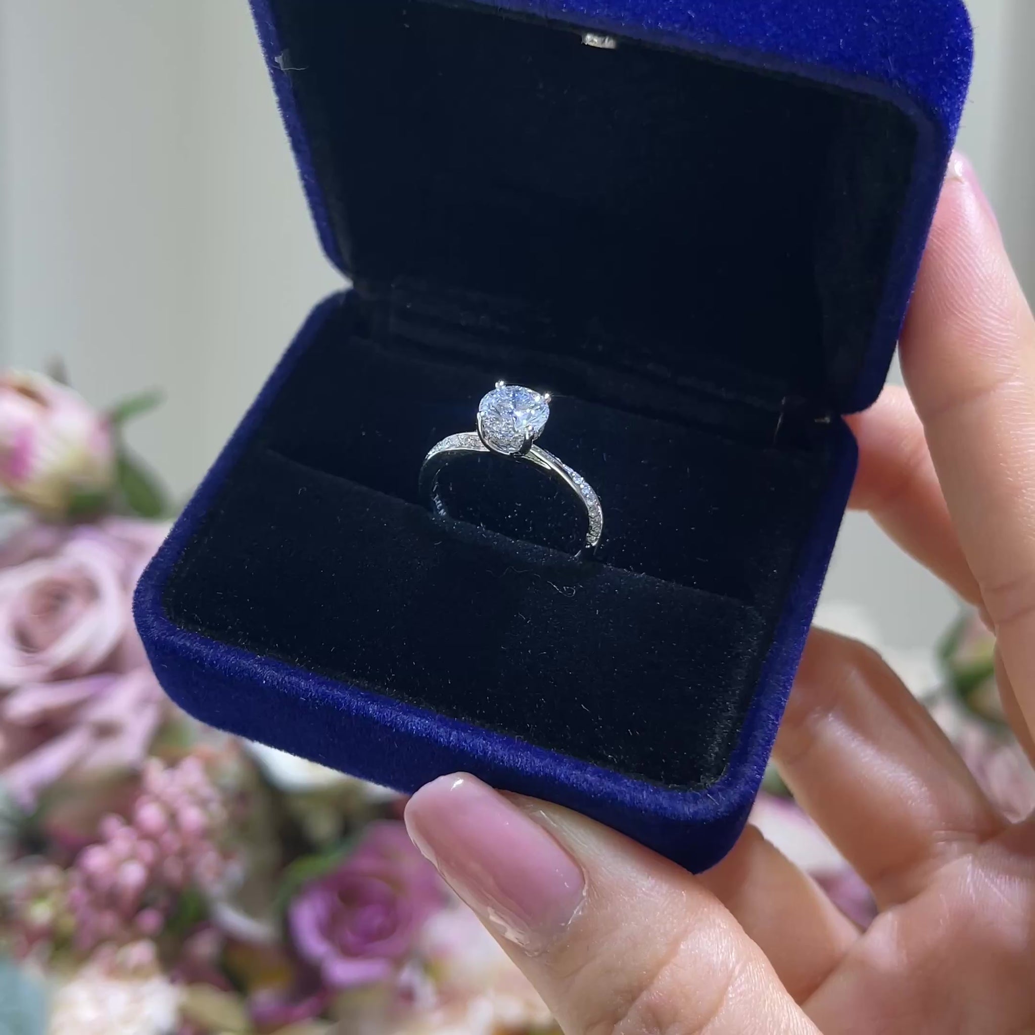Pop the question with our engagement ring box, designed to make your proposal truly unforgettable. Wrapped in luxurious satin, the box's rich blue hue beautifully complements the brilliance of the diamond. An LED light softly illuminates the interior when opened, casting a romantic glow that highlights the ring's sparkle.