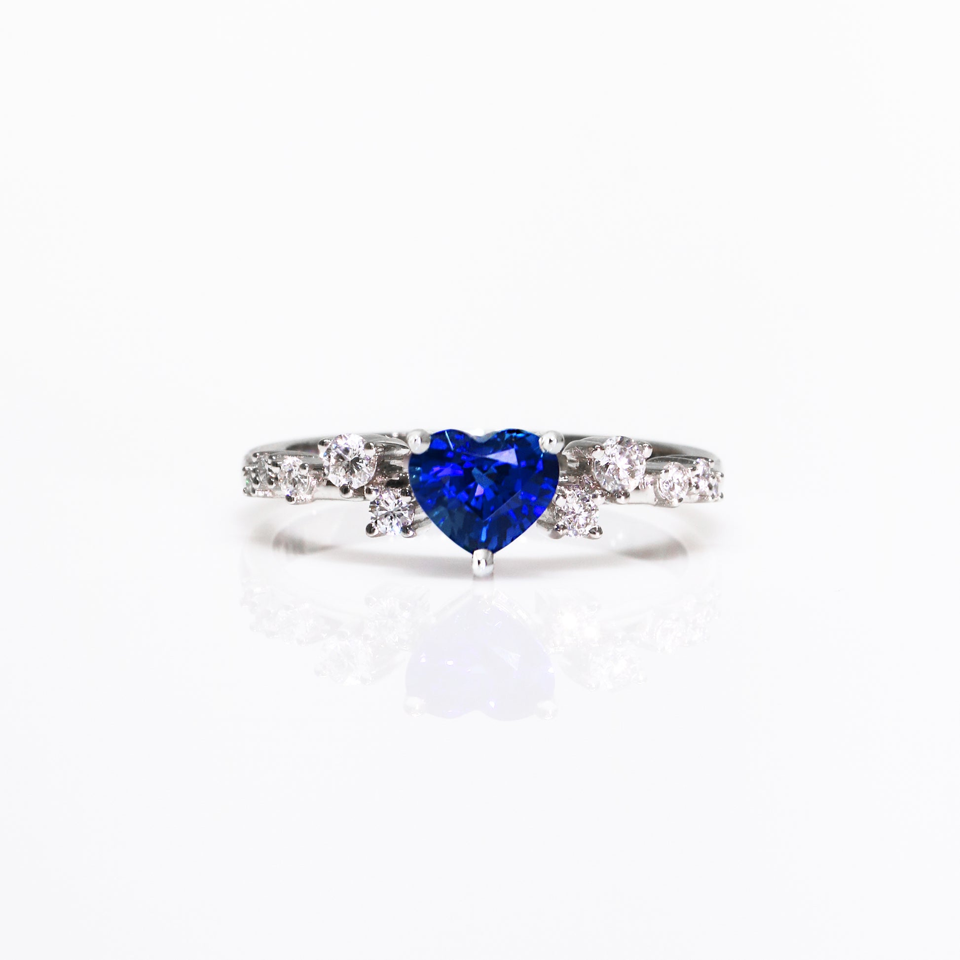 18k White Gold Scattered Diamond Heart-shaped Sapphire Ring ~0.91ct Heated Sapphire ~0.219ct Diamond EF VS