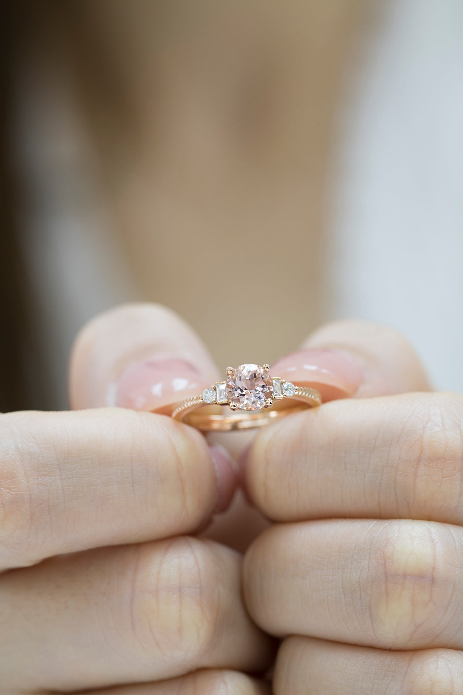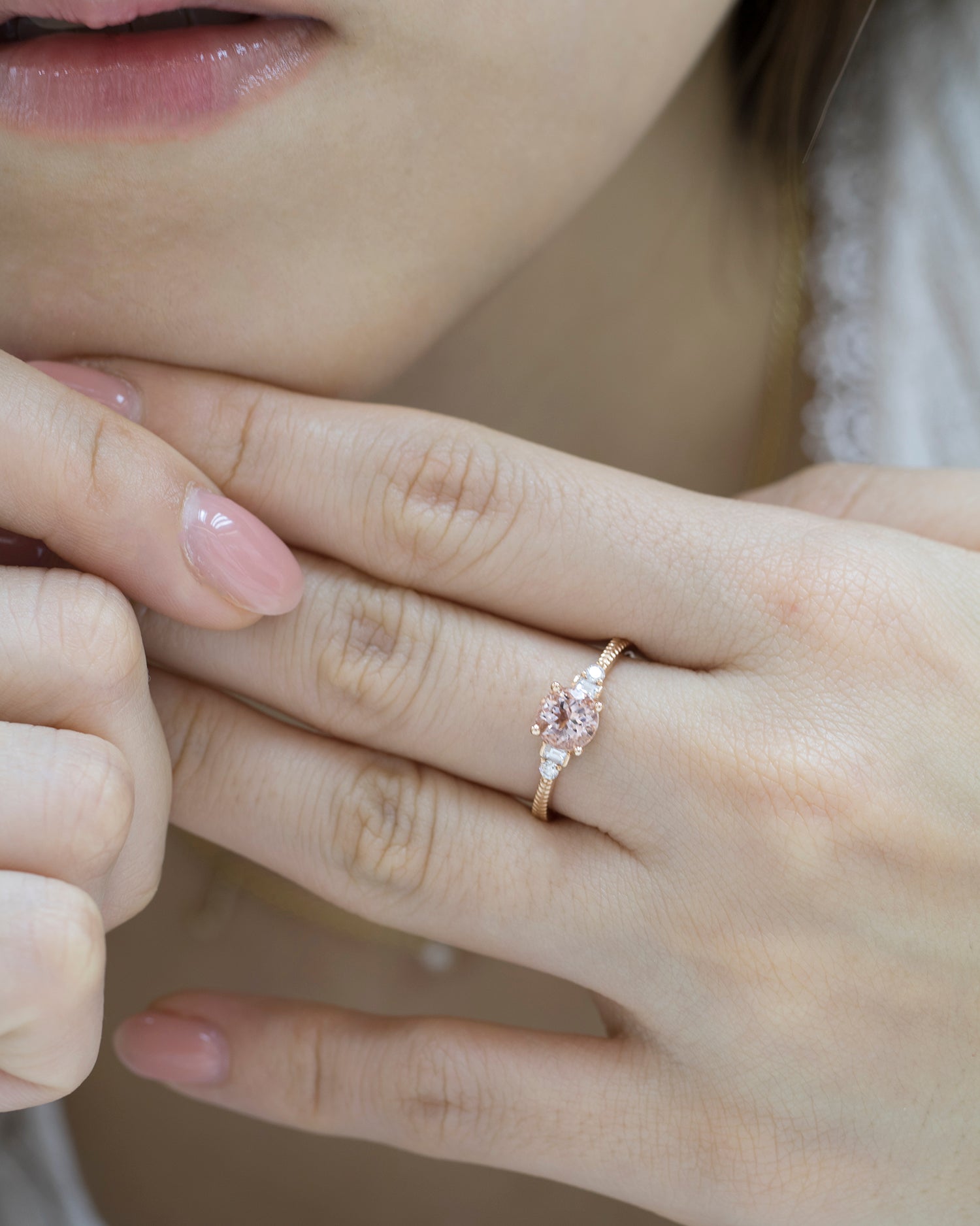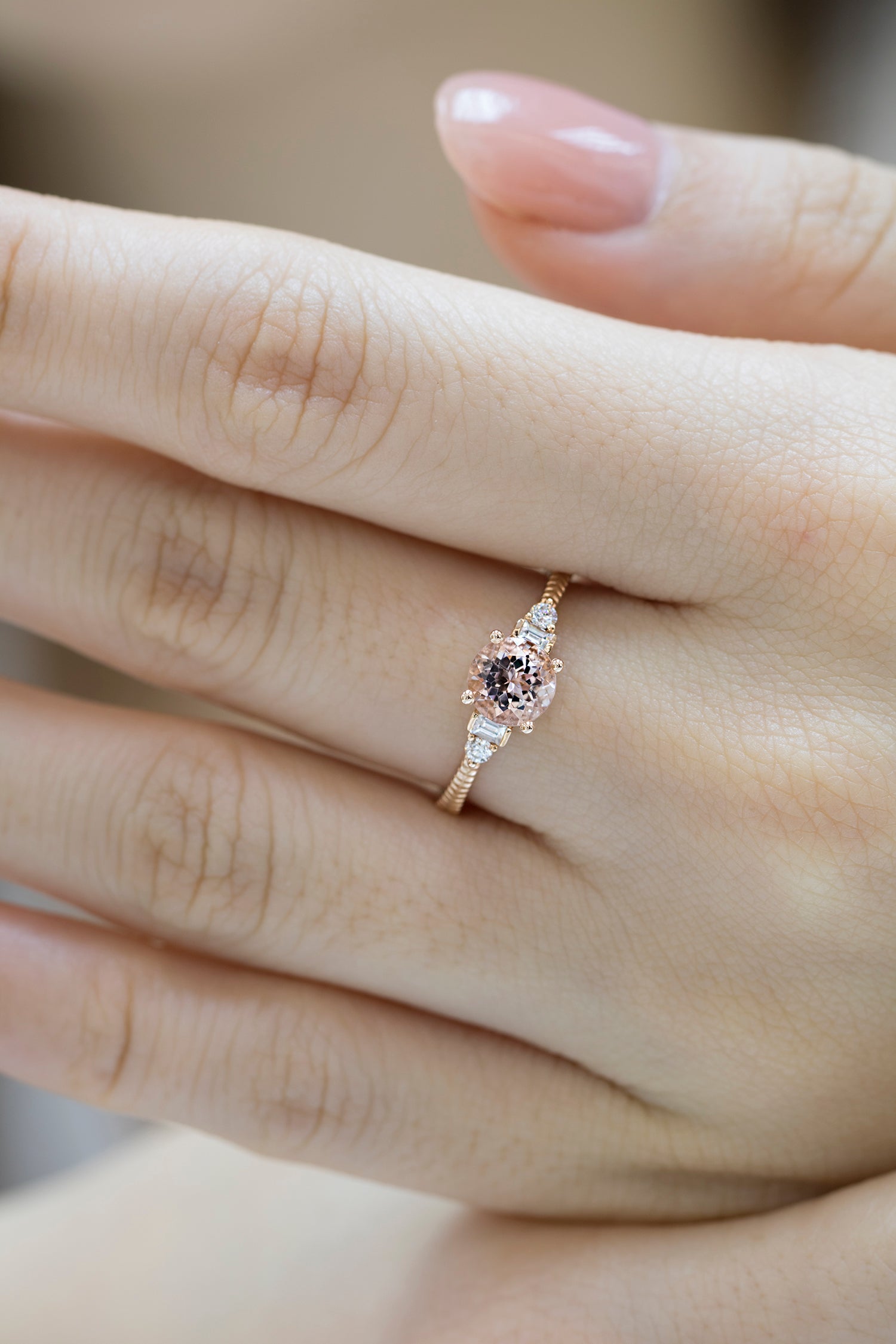 18k玫瑰金圓形粉紅摩根石鑽石戒指