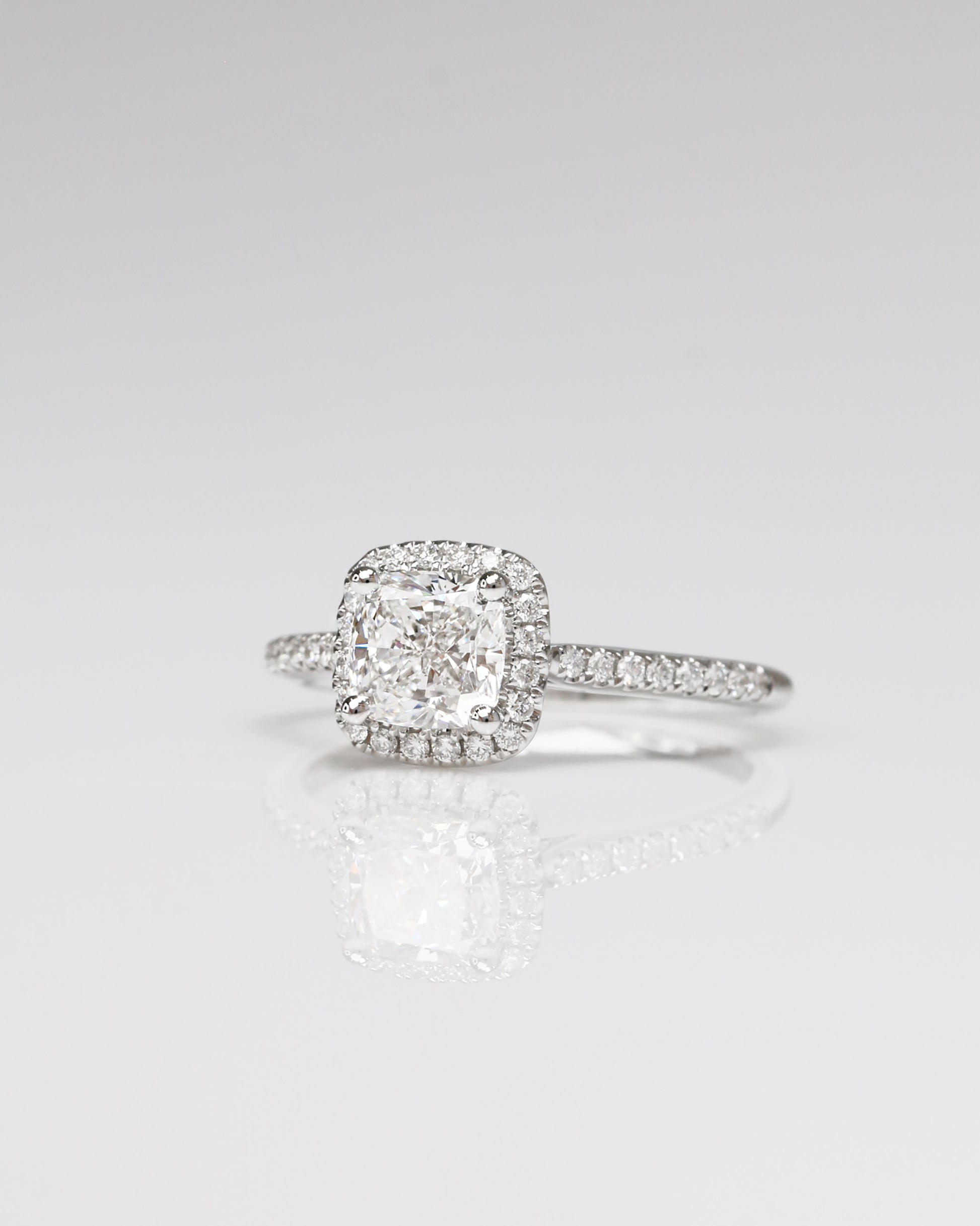 這款18k白金圍鑽鑽石戒指完全展現出鑽石耀眼的光芒。璀璨鑽石光環與戒臂半圈小鑽巧妙結合,襯托着主石散發出奢華光芒,營造極致華麗感。圍石設計令鑽石加倍放大,讓鑽石散發雙重視覺效果,求婚一刻為珍貴的她戴上,綻放閃耀光彩。