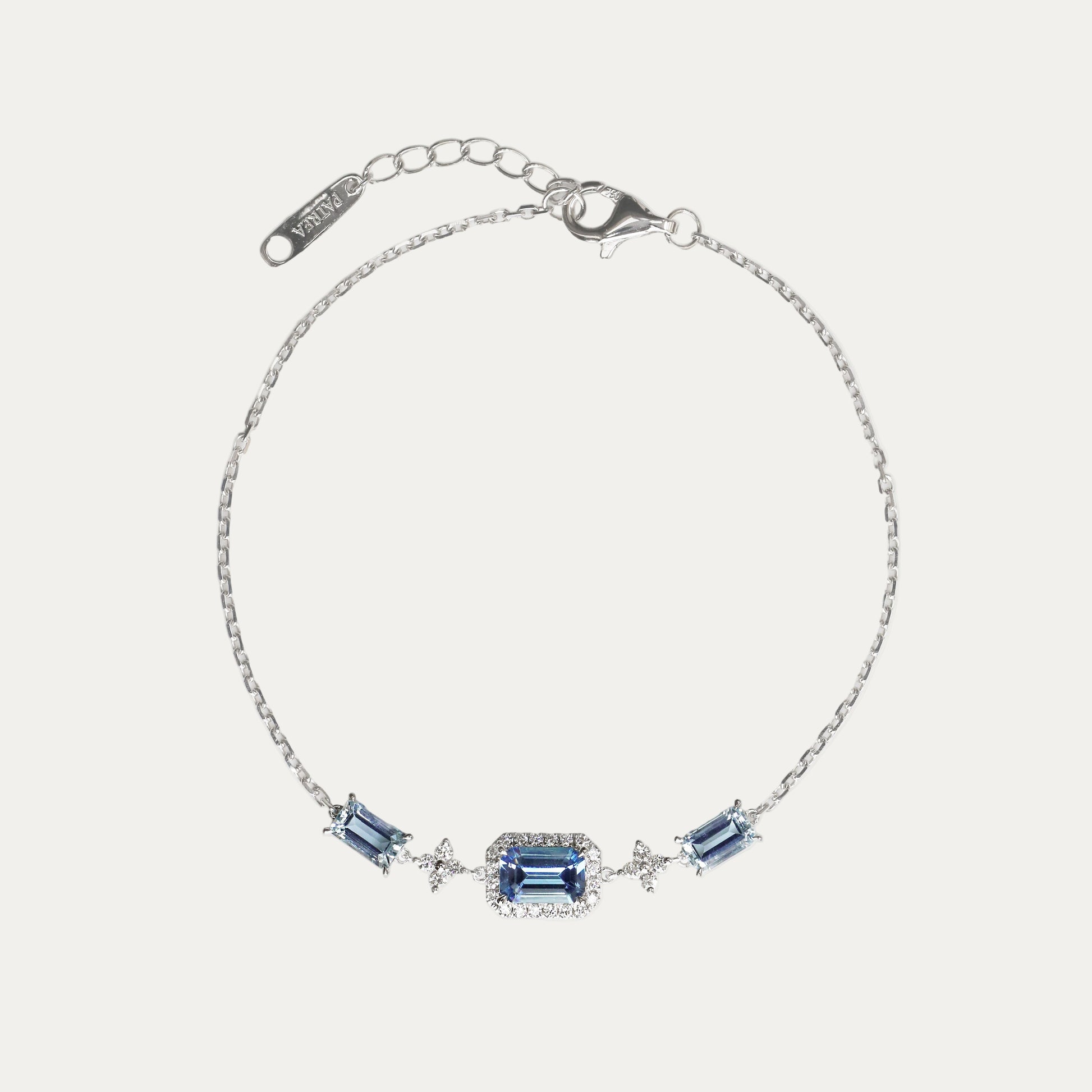 18k White Gold Emerald-cut Santa Maria Aquamarine Halo Diamond Bracelet
