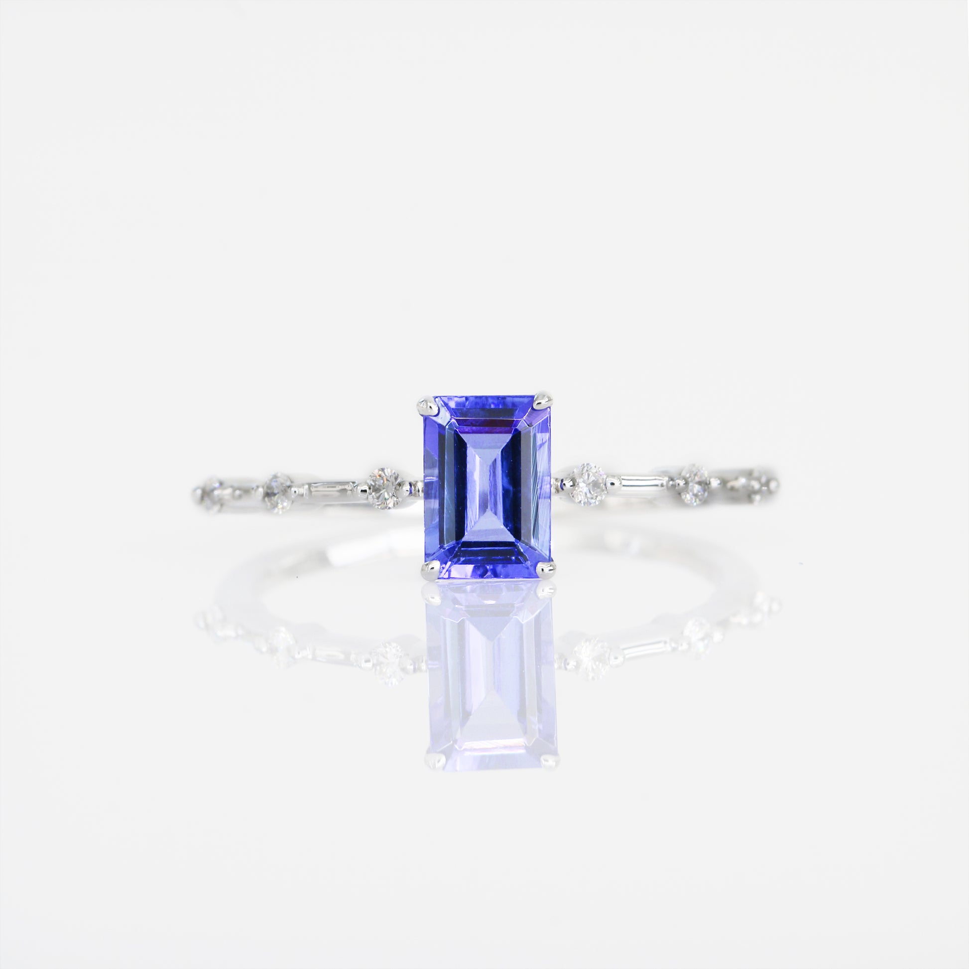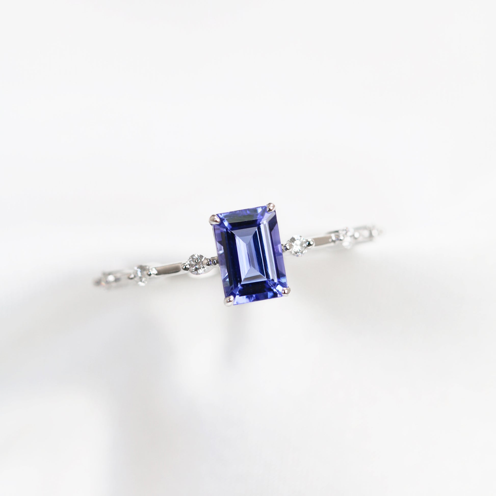 18k White Gold Emerald-cut Tanzanite Diamond Ring