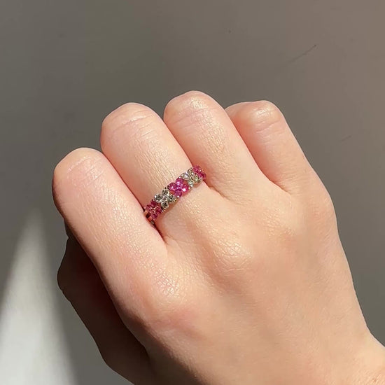 Make a glamorous statement with our pink sapphire ring crafted in 18k rose gold.