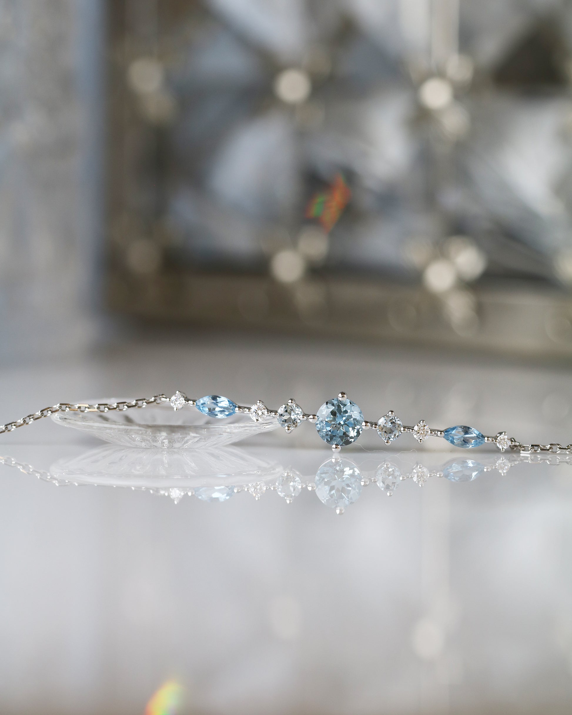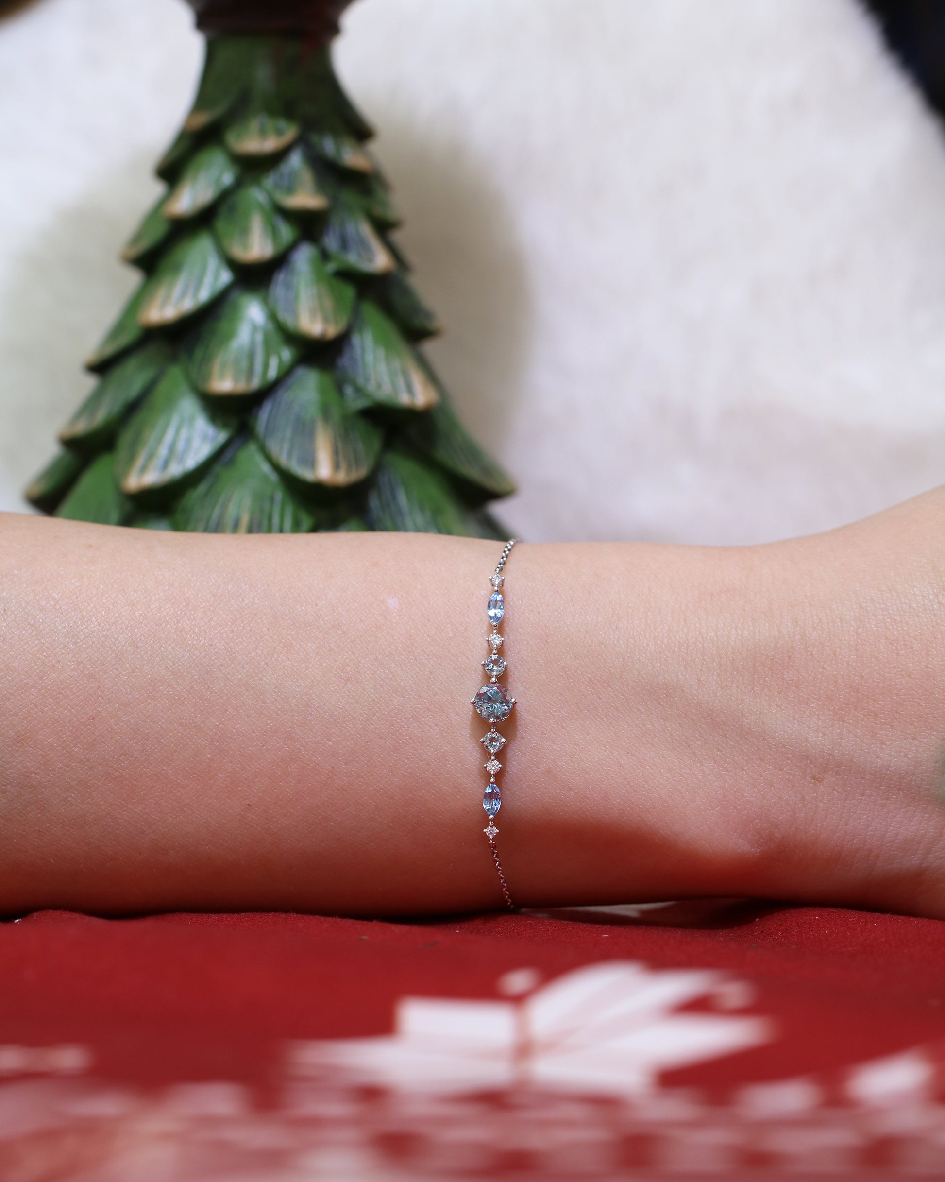 18k白金海藍寶鑽石手鍊