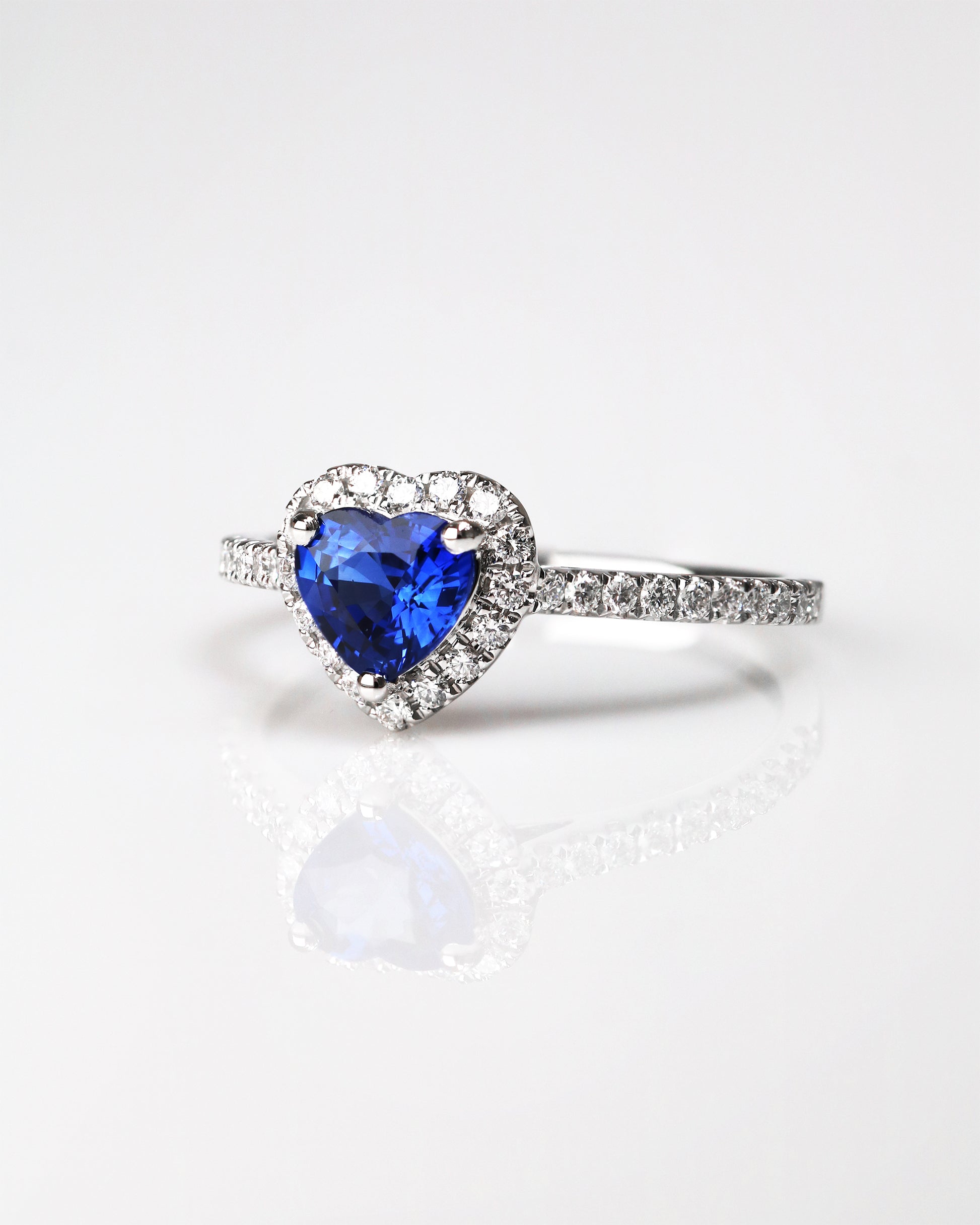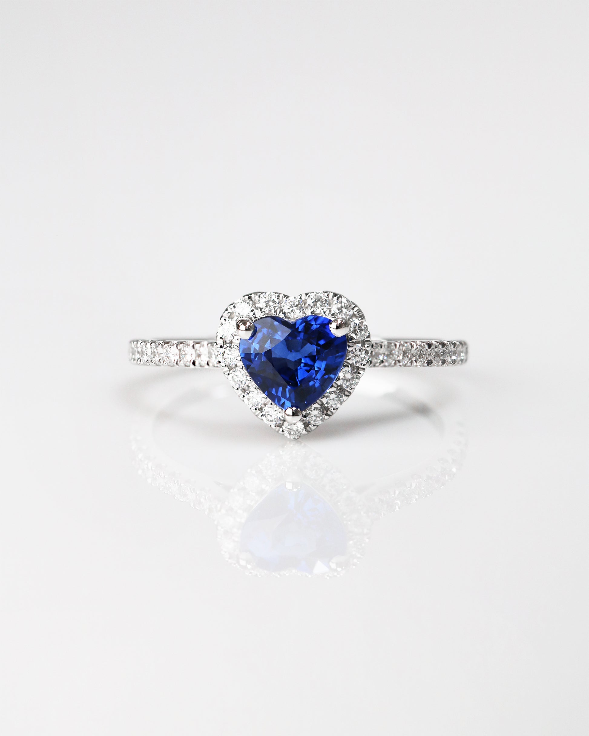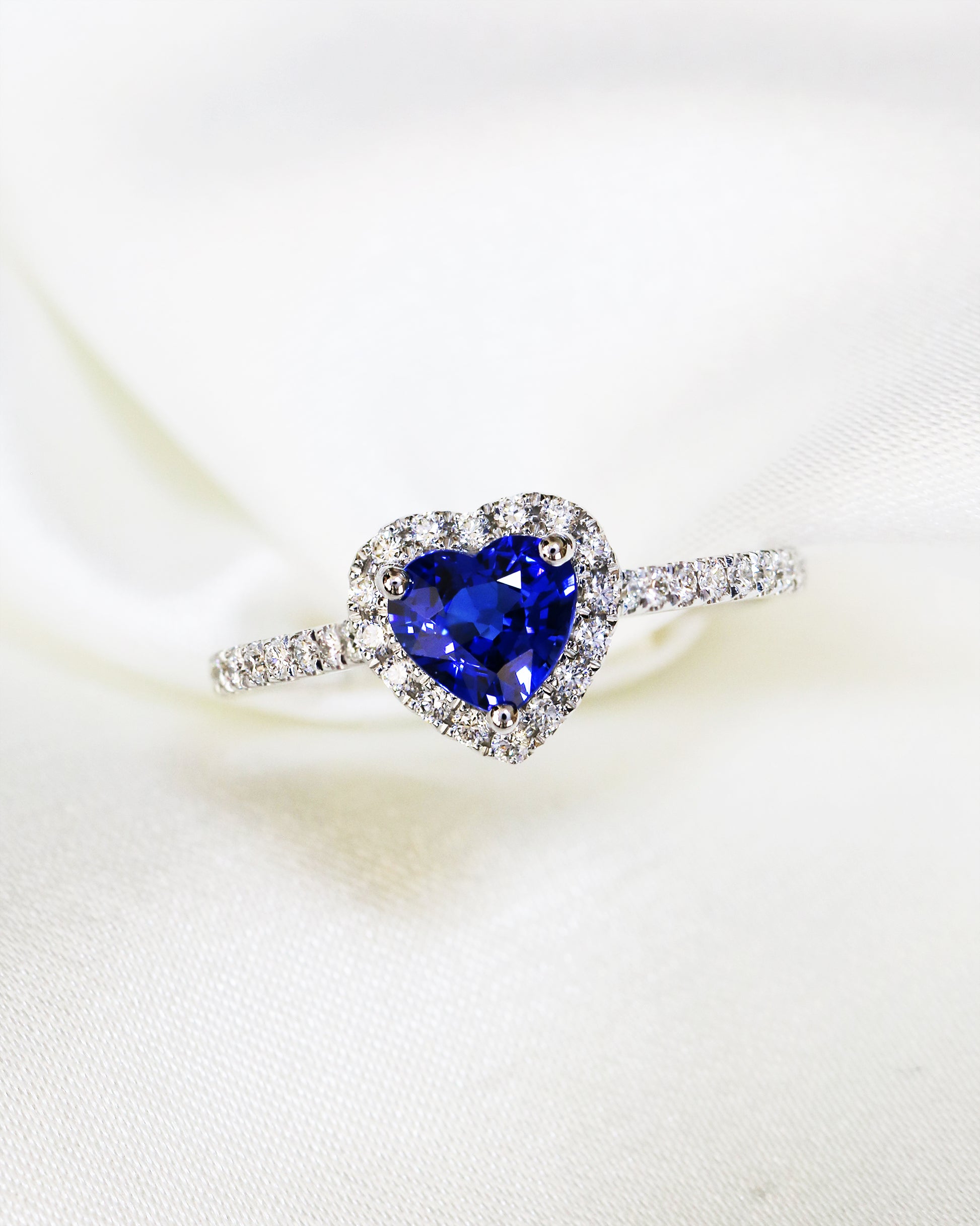 18k White Gold Halo Diamond Heart-shaped Sapphire Ring