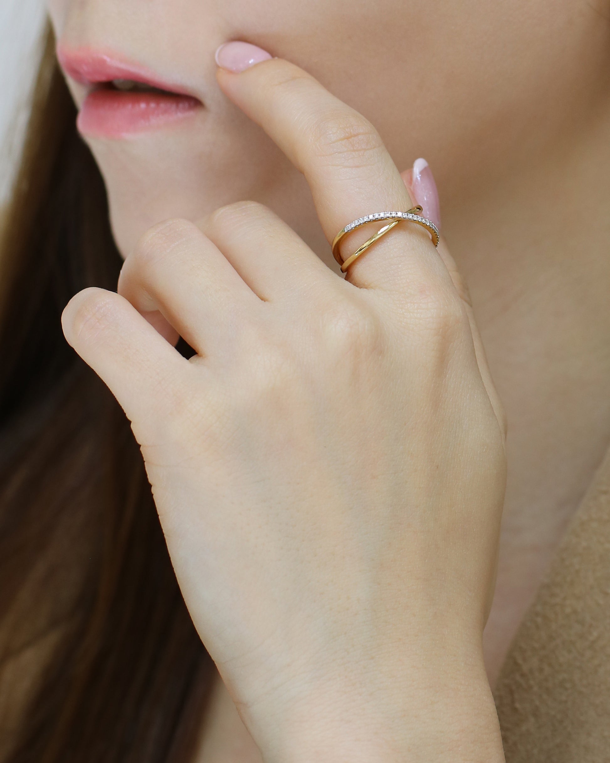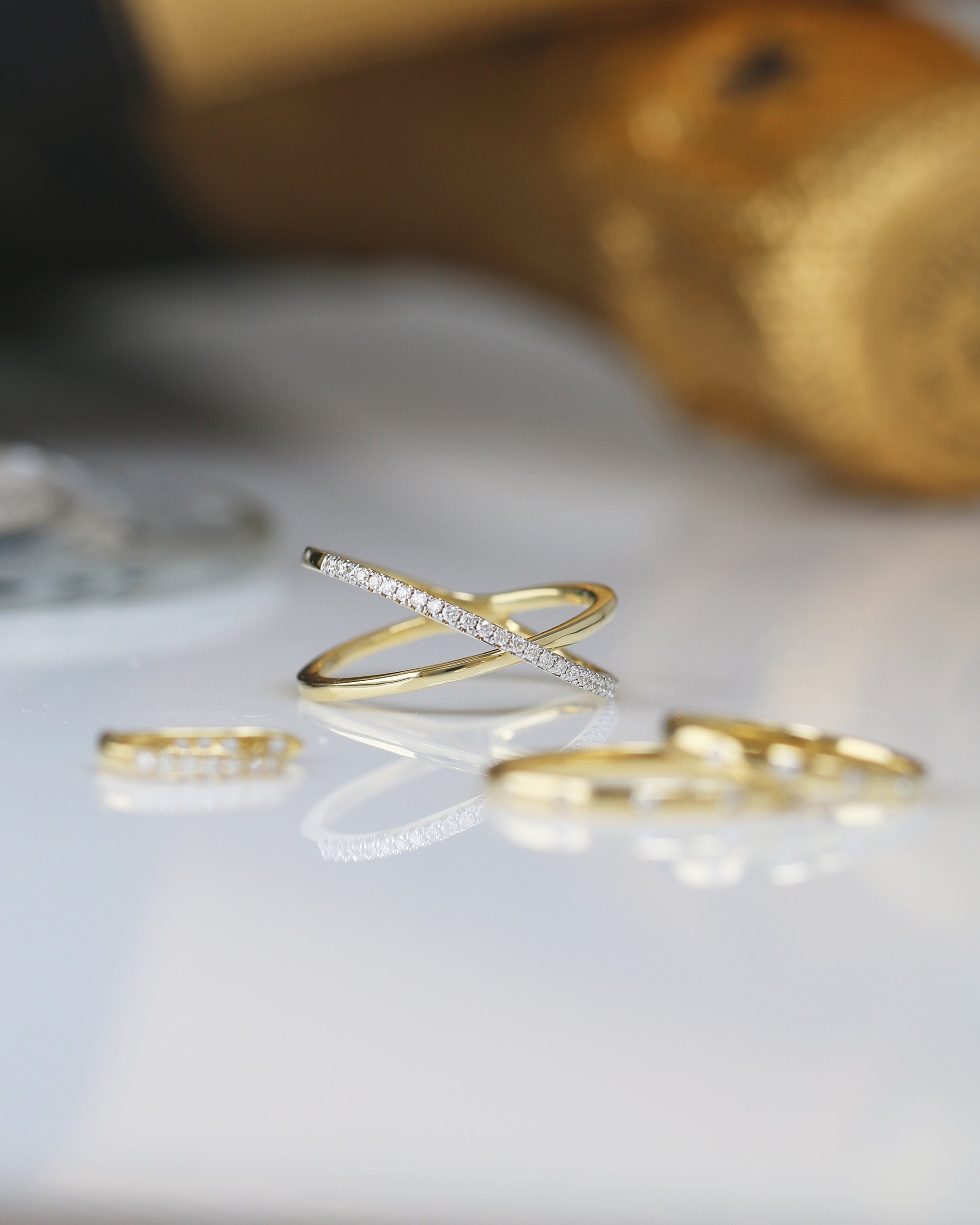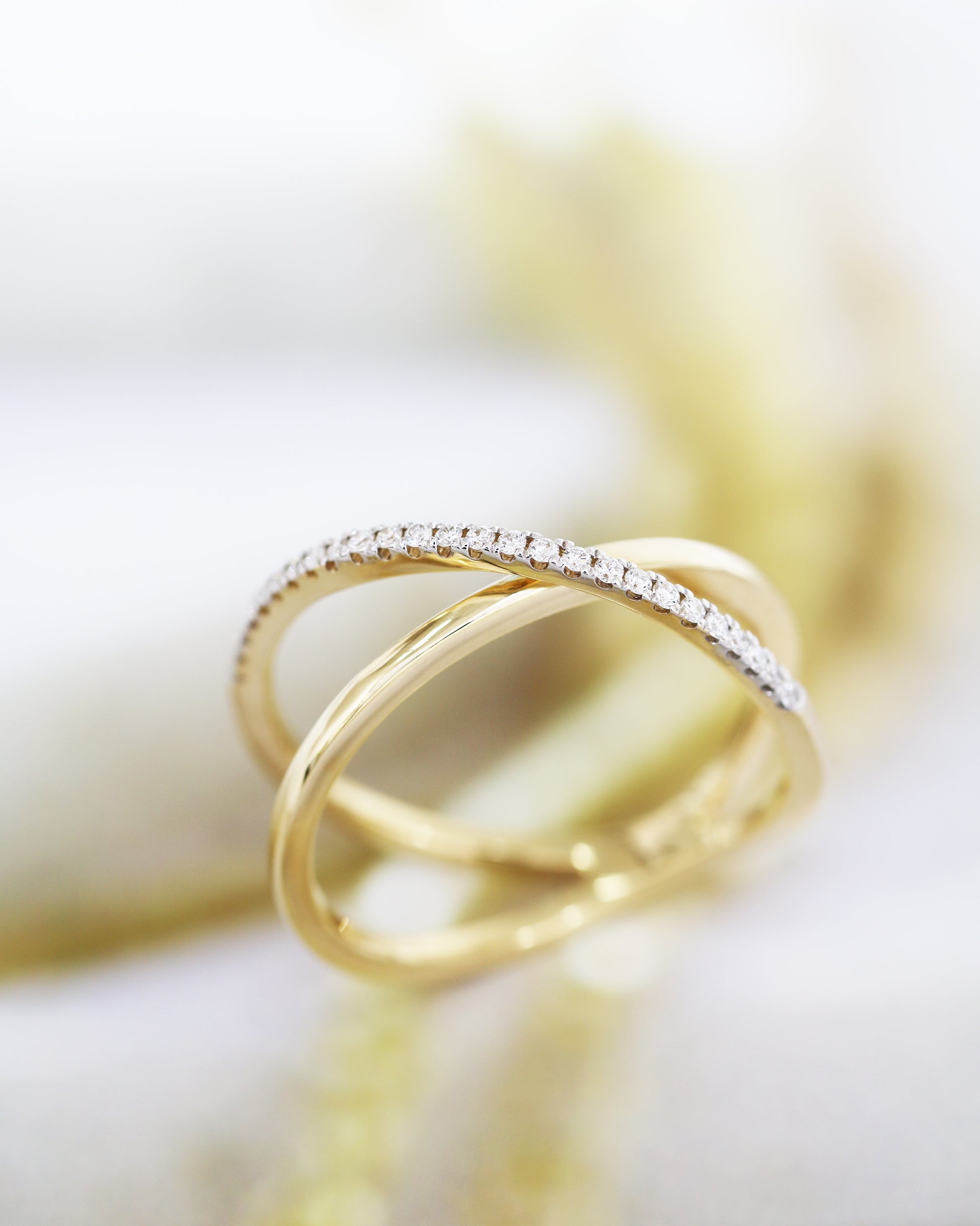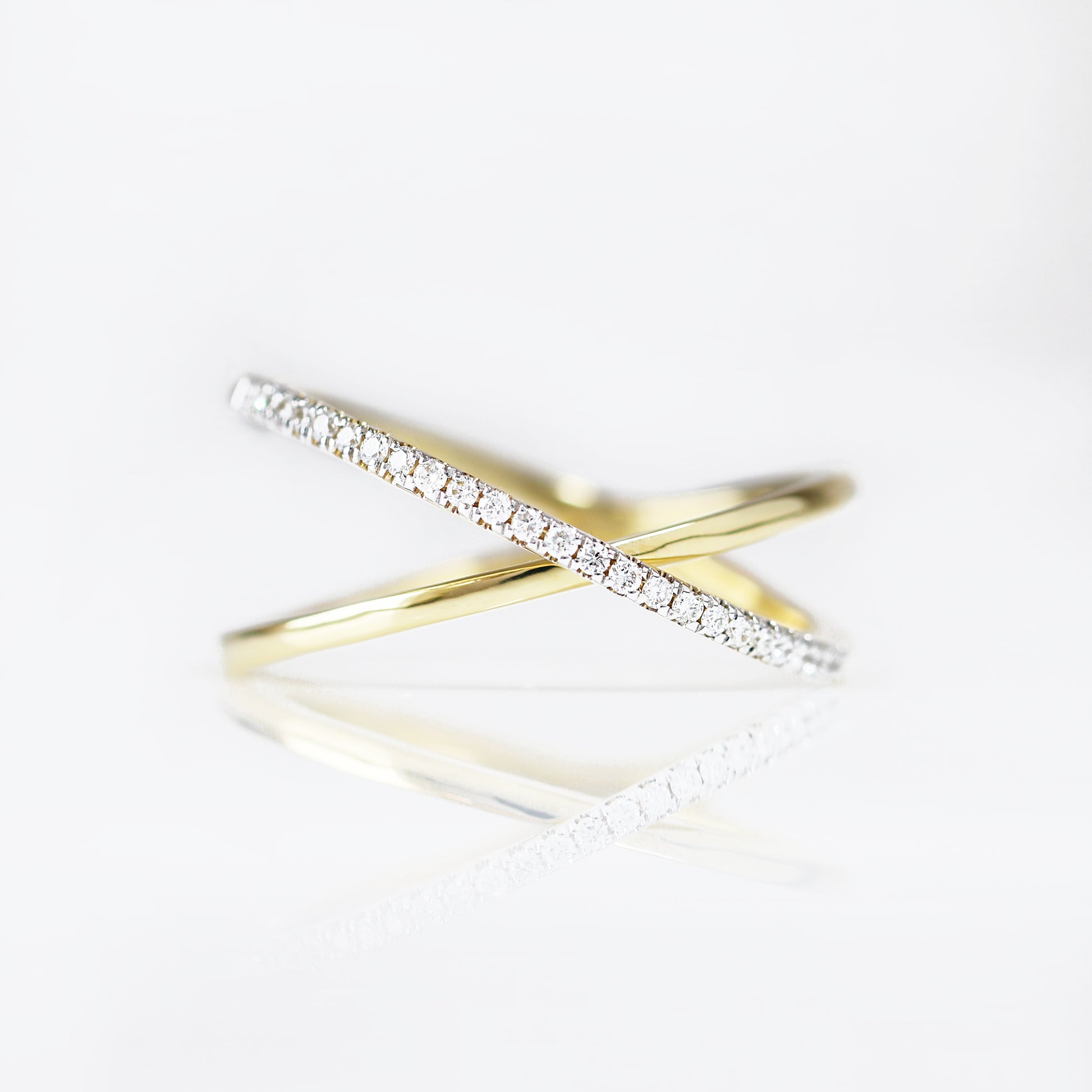 18k黃金交錯鑽石戒指