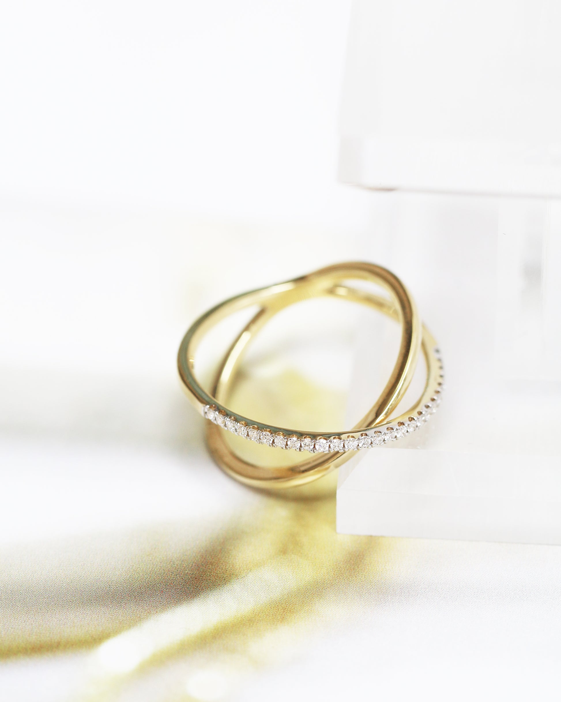 18k Yellow Gold Criss-cross Diamond Ring